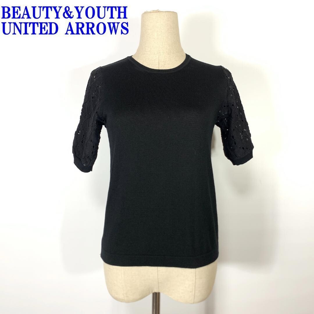 - ビューティーアンドユース 半袖コットンレースリブニットBEAUTY&YOUTH UNITED ARROWS ユナイテットアローズ ブラックS C574