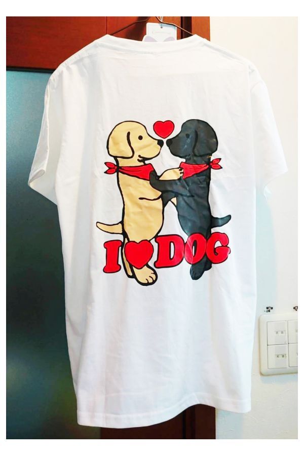 > イタリアングレーハウンド キャバリア シープドッグ セントバーナード 愛犬家に ラブラがらぶらぶ フード オリジナル Tシャツ 白 Sサイズ