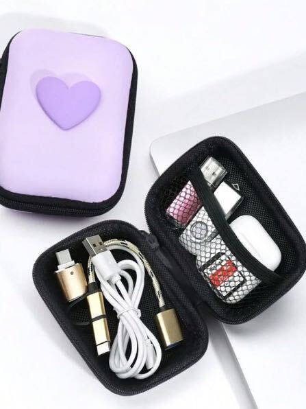 - ぷっくり パープル ハート ハード メッシュ ケース 小物入れ