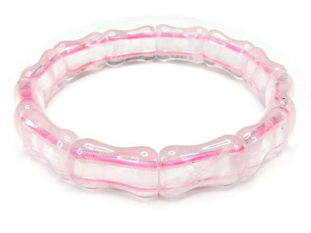 - 透明感良好ローズクォーツ竹形バングルブレスレット天然石恋愛運プライム