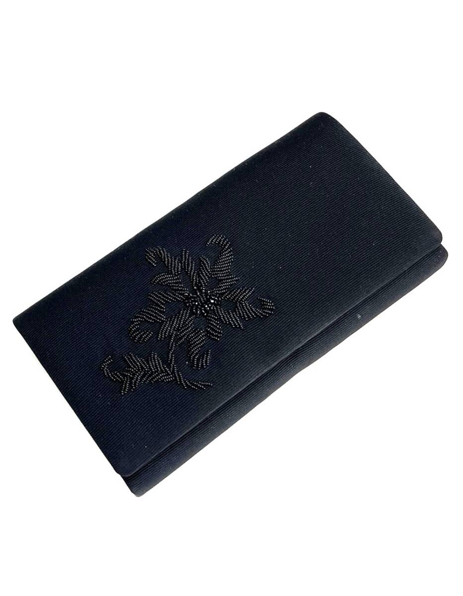 - 花とら●リサイクル和装小物 バッグ 喪用 和装バッグ ビーズ 240614