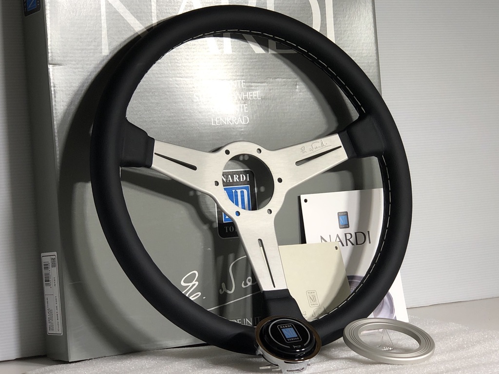 - 在庫有★NARDI ナルディー N131 クラシック レザー 360φ ブラック レザー シルバースポーク 360mm 検)パイ Φ 皮 革 銀 ブラック