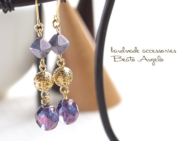 > ◇◇+angelo+チェコビーズと透かし玉のピアス(p-403)アメジストラスター G ラベンダー パープル バイコン