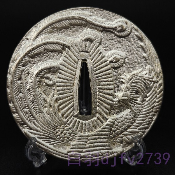 > SY125 日本刀装具 刀鍔 朱雀図 合金製 現代品 つば ツバ 刀剣美術 重さ約124G 厚さ約4mm