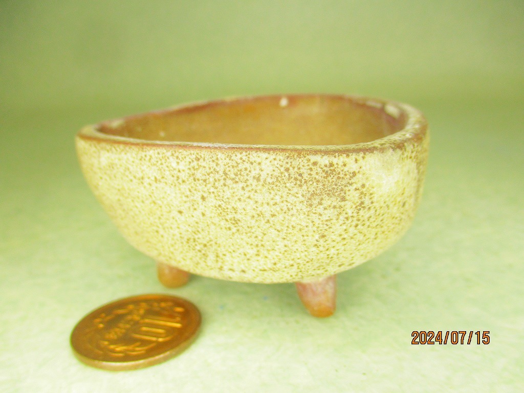 - [緑の市場] 小品盆栽鉢 銘無し 白釉三角鉢 6㎝ (J024)送料無料/有料(ゆうパック)選択可※無料はメール便ポスト投函