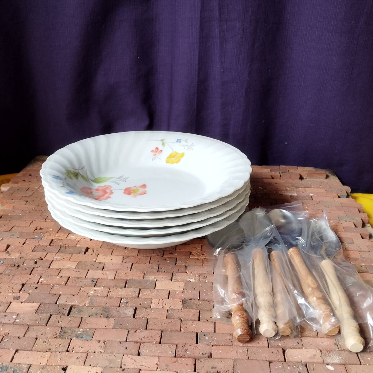 - Excellent EXCELLENT お皿 5枚セット 花柄 カレー皿 スプーン付 洋食器 5客セット 未使用