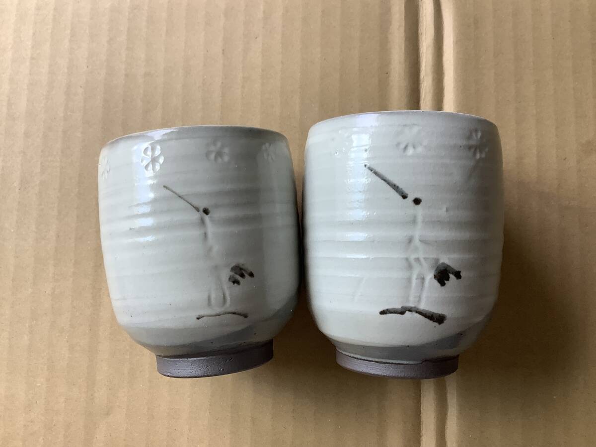 > 京焼 清水焼 湯呑み 昌久 40年以上前 元夫婦茶碗 オマケの小さい方は傷あり 金継ぎして欲しい!
