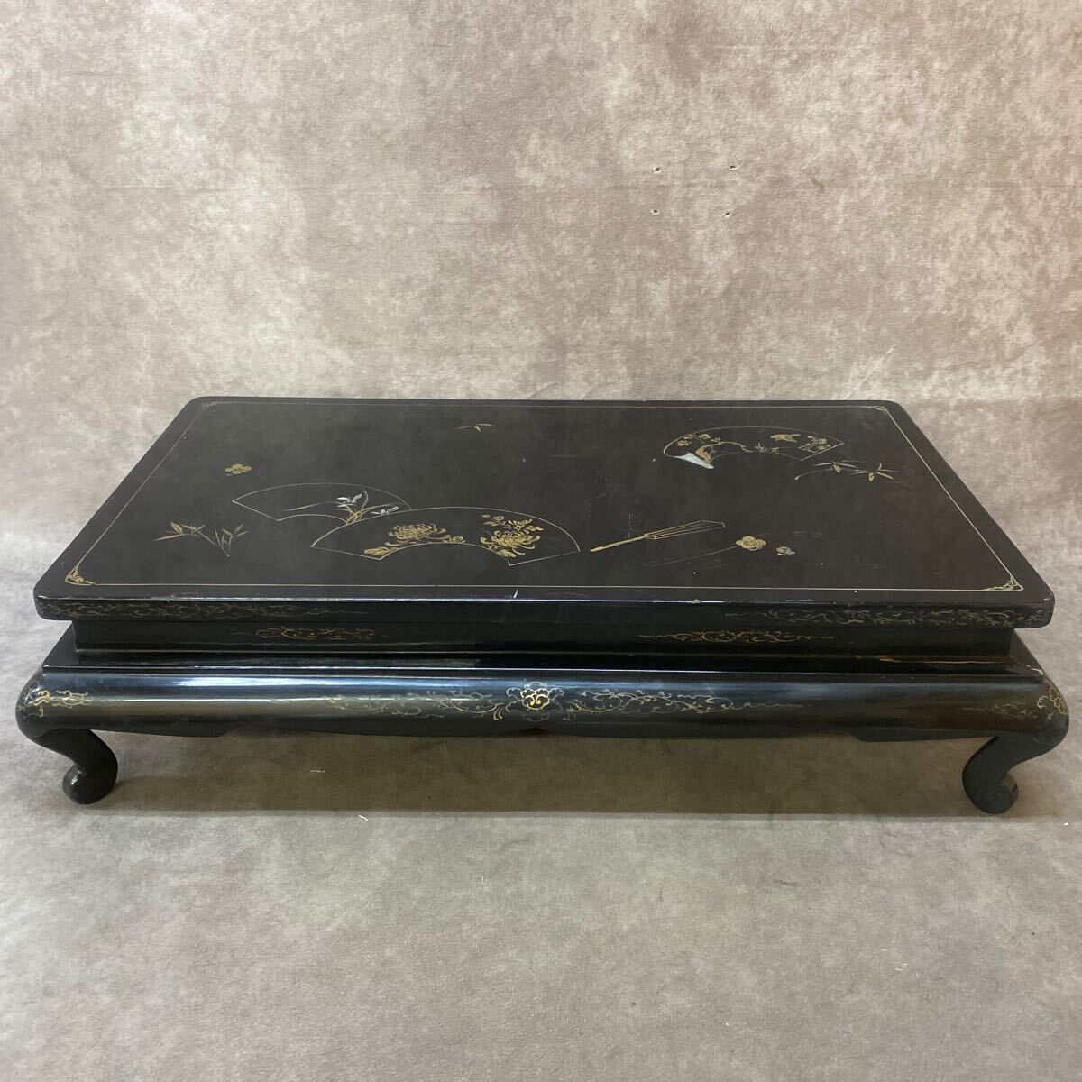 - 時代物 飾台 漆塗り 金彩 足付き 花台 香炉台 盆栽台 飾り台 木製 約13×55×33cm インテリア 床間 茶道具