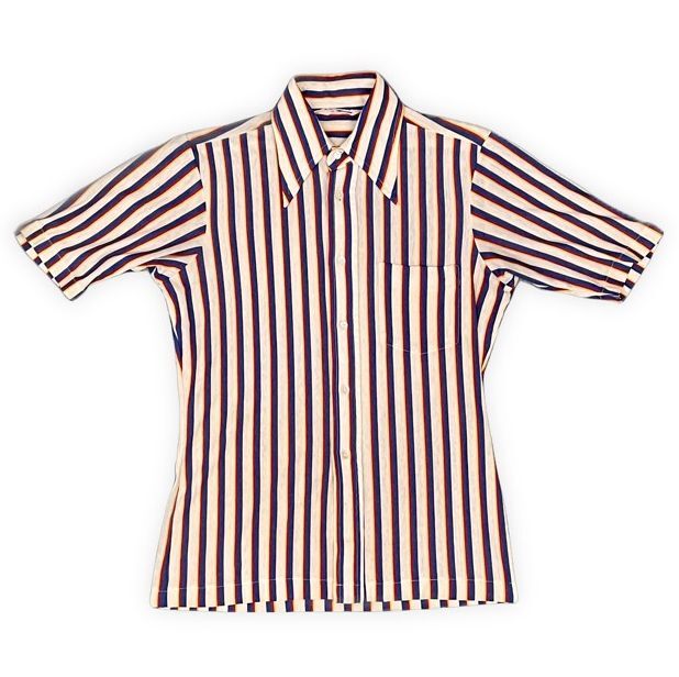 - 70's 米国製 ARROW Knits アロー ビンテージ ポリエステル 半袖 シャツ ストライプ M [la-1015]