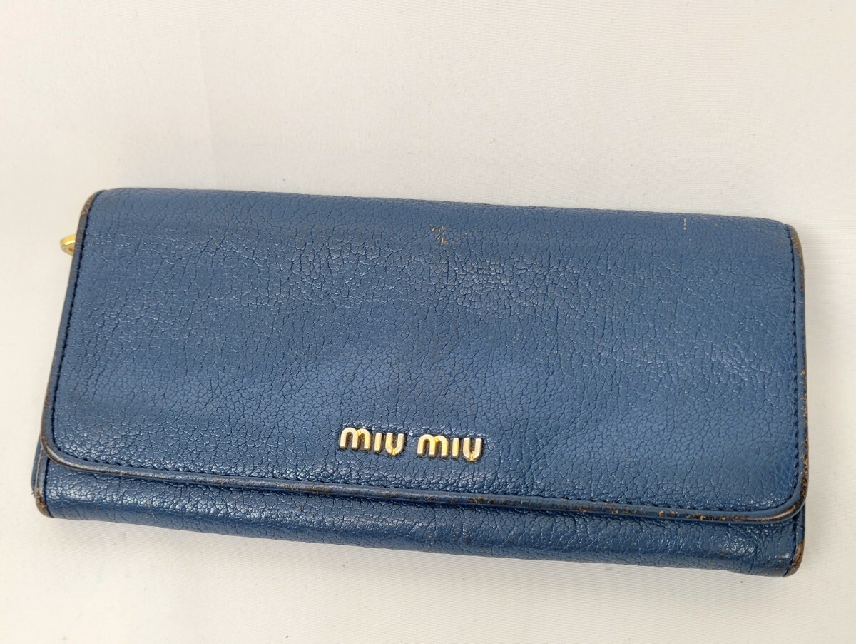 - miumiu 二つ折り ウォレット 長財布 レザー 本革 財布 青