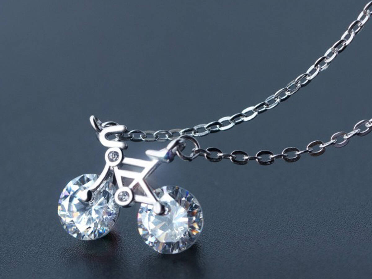 - 自転車 ネックレス レディース 華奢 シルバー925 自転車 チェーンネックレス sv925 ラインストーン 自転車好き ジュエリー アクセサリー