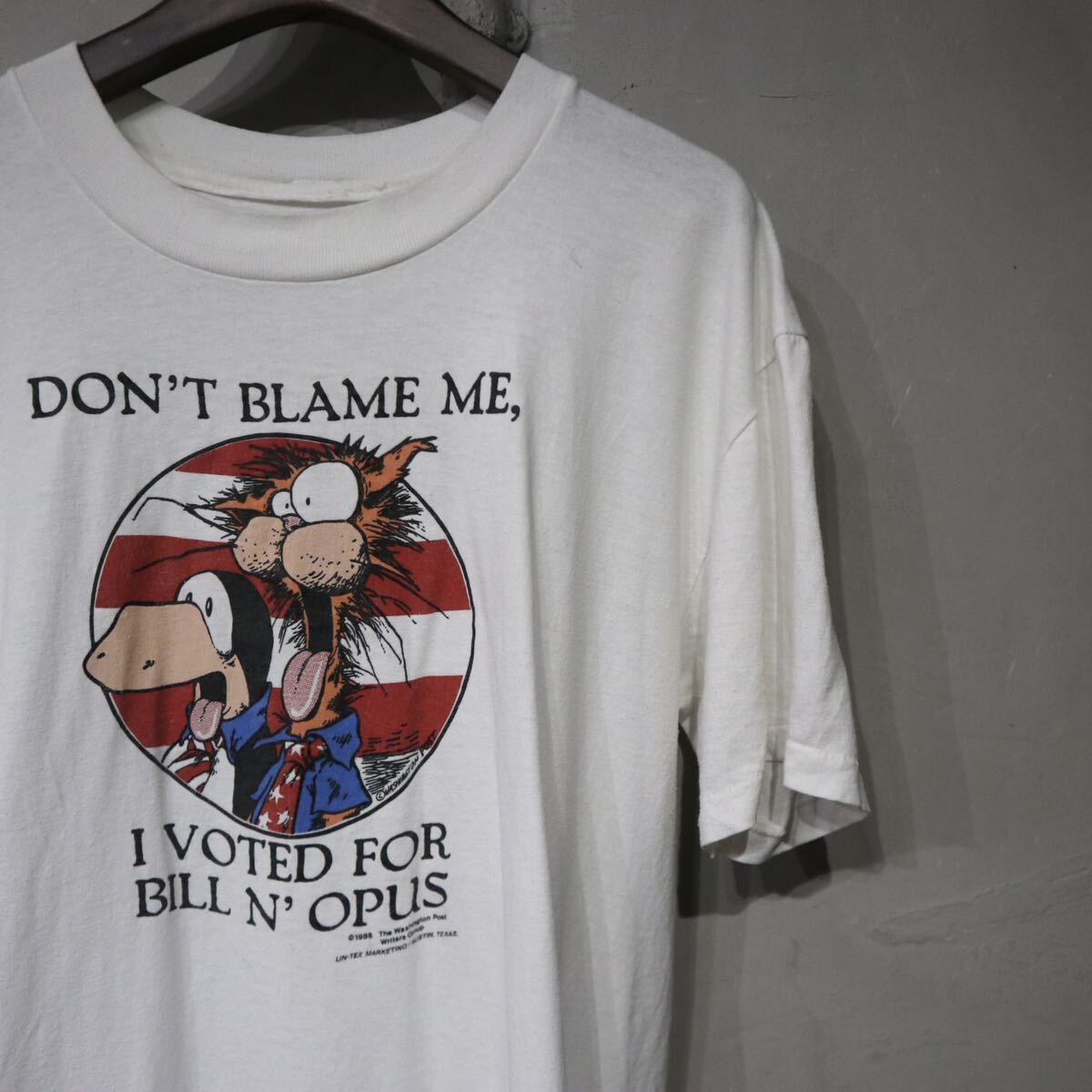 - 【即決】80s DON'T BLAME ME プリントTシャツ 袖シングルステッチ 丸胴ボディー 動物 ネコ 白 ホワイト 古着