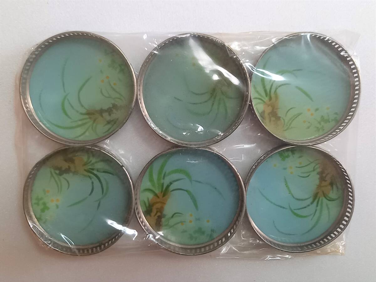 - 昭和レトロ ガラスコースター 6つ まとめて 茶器 茶托 家庭雑器 当時物 インテリア 小物入れ 花 自然 アンティーク ビンテージ