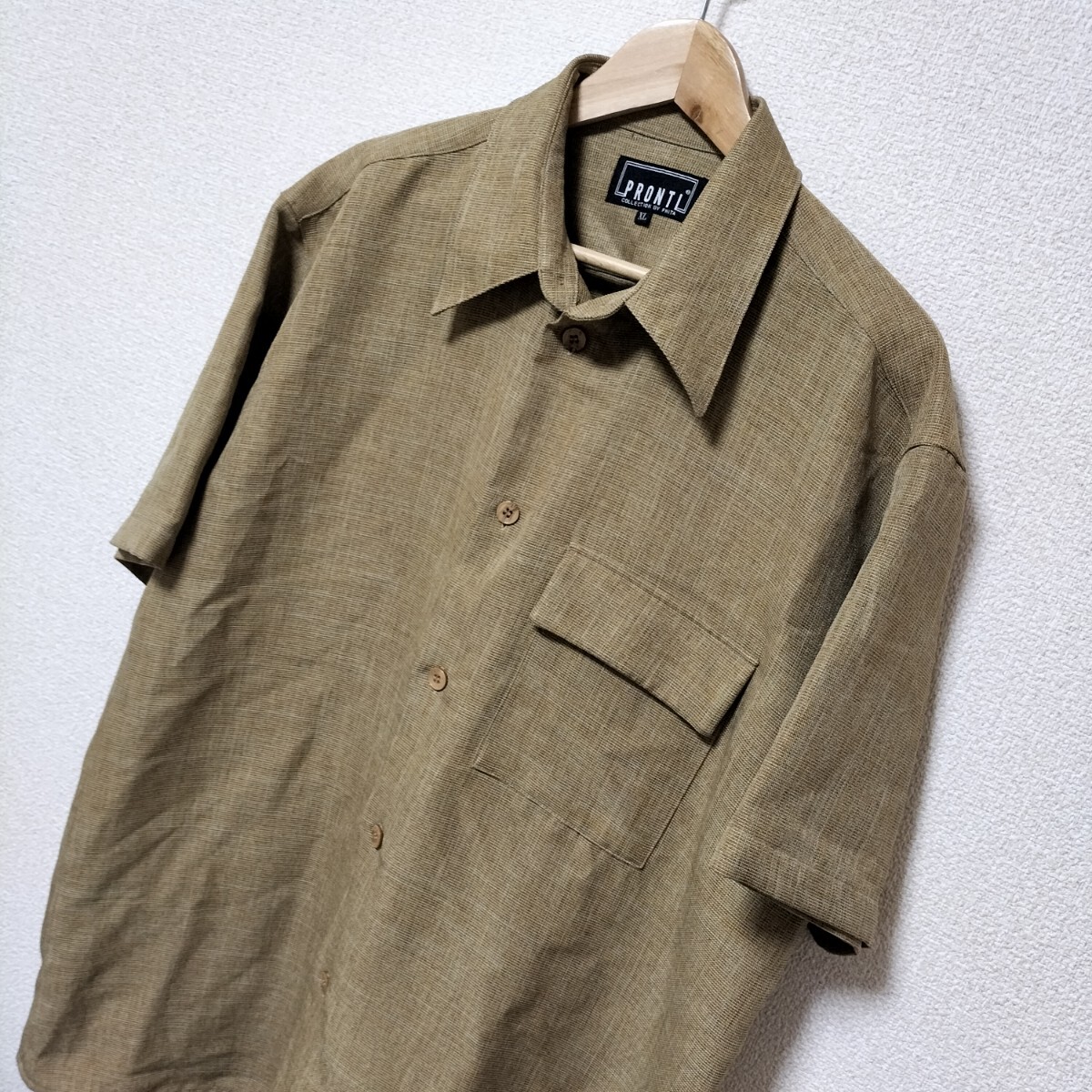 > 美品☆PRONTI プロンティ 半袖 シャツ ナイロンポリ メンズ サイズXL イエローブラウン 茶系 ヴィンテージ オールド 希少 古着 USED