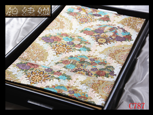 - C787厳選西陣 錦繍織 振袖可 目を惹く工芸的逸品 青海波花鳥文様 六通高級正絹純金糸美術袋帯 ◇検◇簪着物名古屋帯帯締め