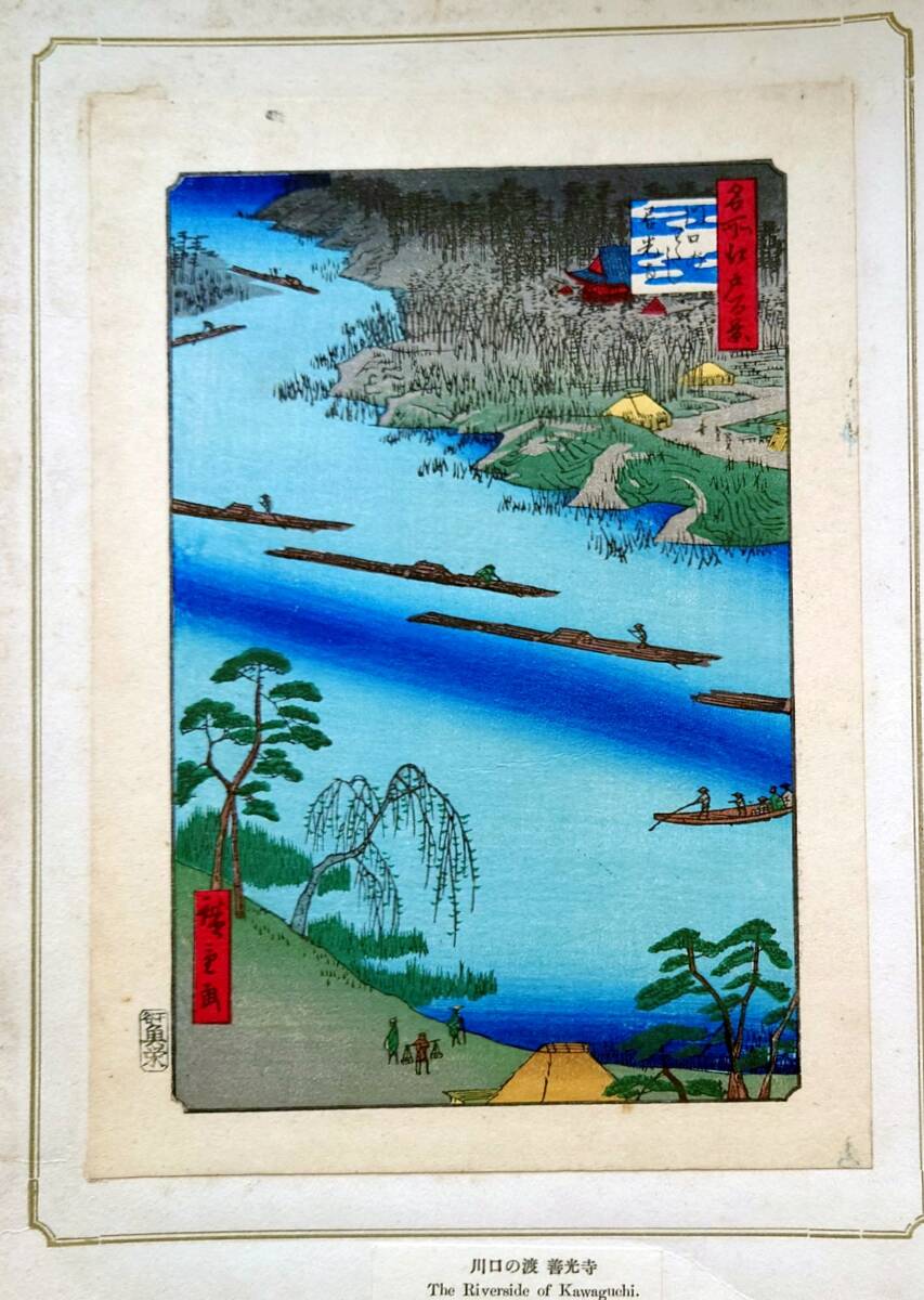 - f24080020〇名所江戸百景 彩色木版画 浮世絵 歌川広重 川口のわたし 善光寺 複刻昭和年代〇和本古書古文書