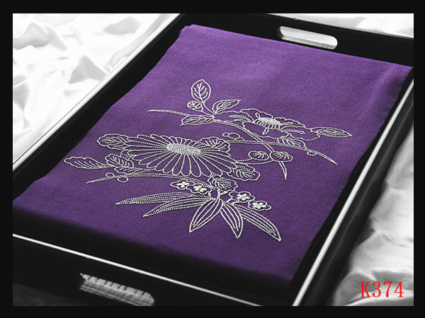- K374厳選逸品 縮緬 相良刺繍 本紫色地 女性らしく 正絹高級美術名古屋帯 新品同様 ◇検◇簪着物袋帯帯締め