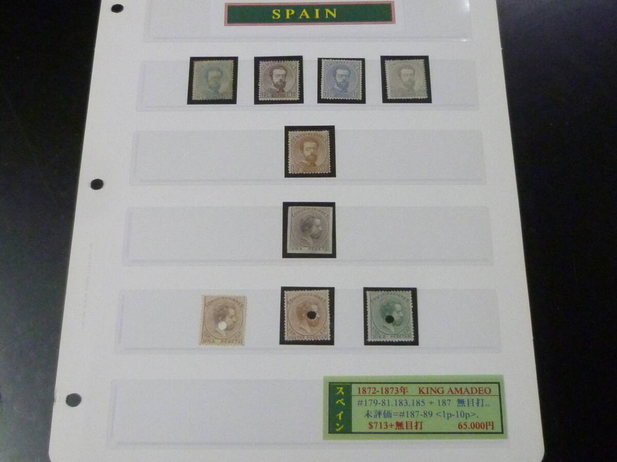 > 24L M №4 スペイン切手 1872-73年 SC#179-81・183・185・187(無目打) 計6種+下段3種SC#187-89(使用済)未評価 ※説明欄必読