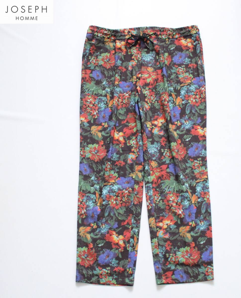 > 【 ジョセフオム 】PEGG EASY スーパーストレッチリネン イージー パンツ 52 PP JH KM 0404 定価¥25,300 クロップド 花柄 ボタニカル XXL