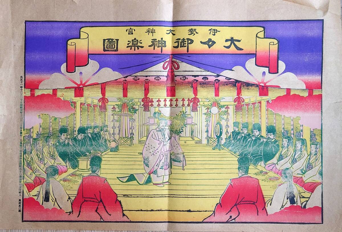 - f24080510〇摺物 石版画 伊勢大神宮 大々御神楽図 大正11年〇和本古書古文書