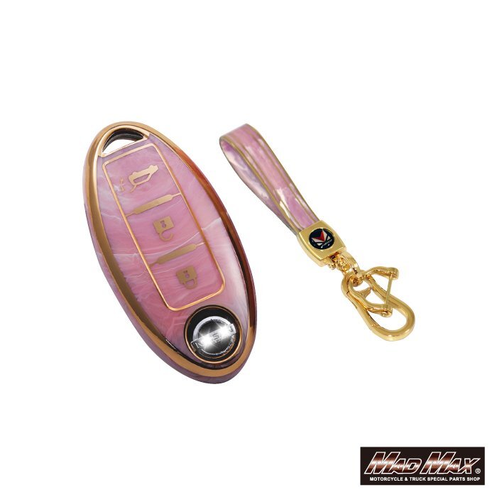 - カー用品 NISSAN 日産 大理石調 TYPE A 3ボタン式 TPUスマートキーケース ピンク/プレゼント 父の日 母の日 誕生日【メール便送料210円】