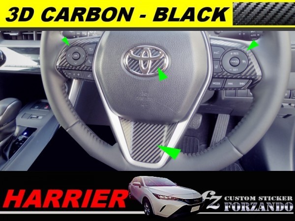 - ハリアー 80系 ステアリングパネルカバー 3Dカーボン調 ブラック 車種別カット済みステッカー専門店fz AXUH80 MXUA80