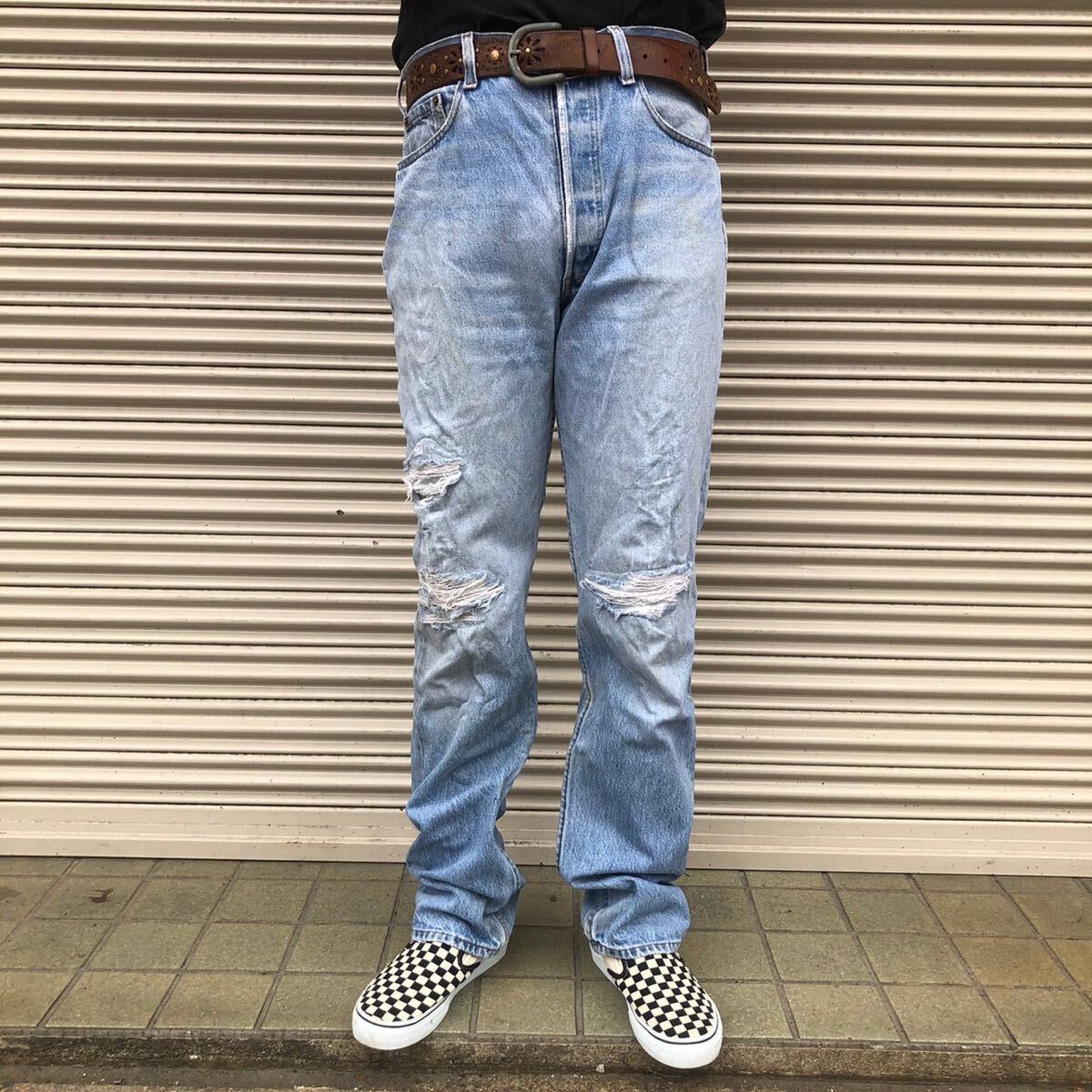 > USA製 90s Levis 501 ヴィンテージ アメリカ デニム パンツ 米国 リーバイス 80s 525 刻印 アイスブルー ジーンズ インディゴ W32 84cm