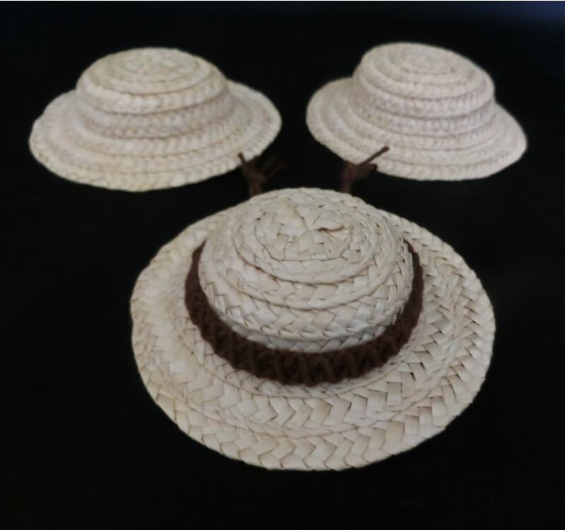 - ●人形遊び ドール用 麦わら帽子 3個セット 手編みでのデコレ 1個 ストローハット リカちゃん 着せ替え人形 セットアップ f