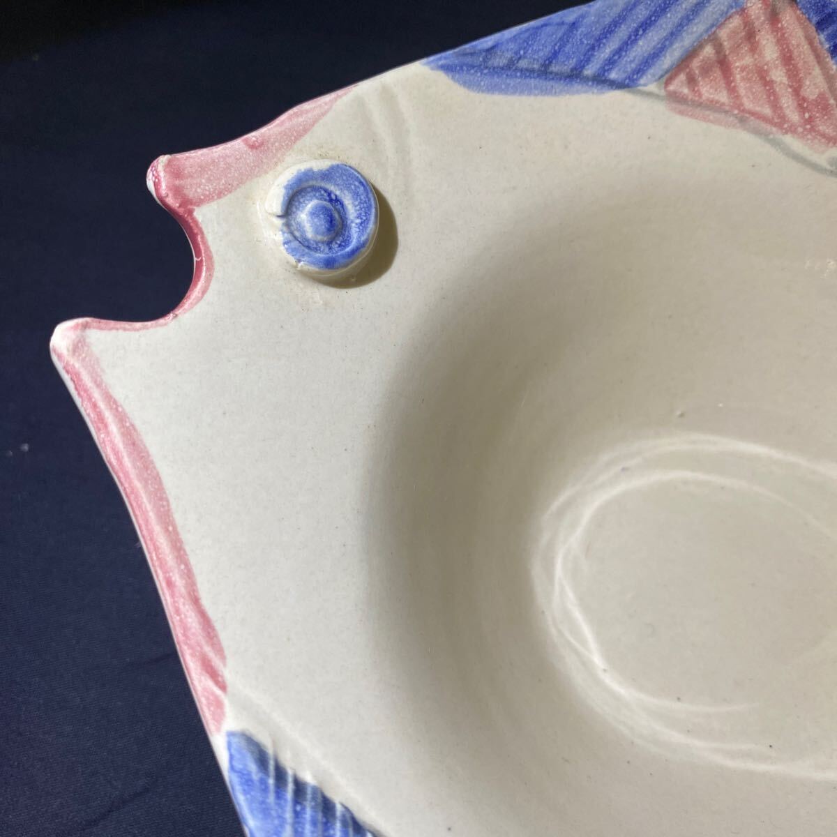 > 【陶器 フィッシュ ボウル】サイン有り 洋食器 魚形 ボウル お魚 皿 手作り 手捻り 手描き 手書き ハンドクラフト 作家