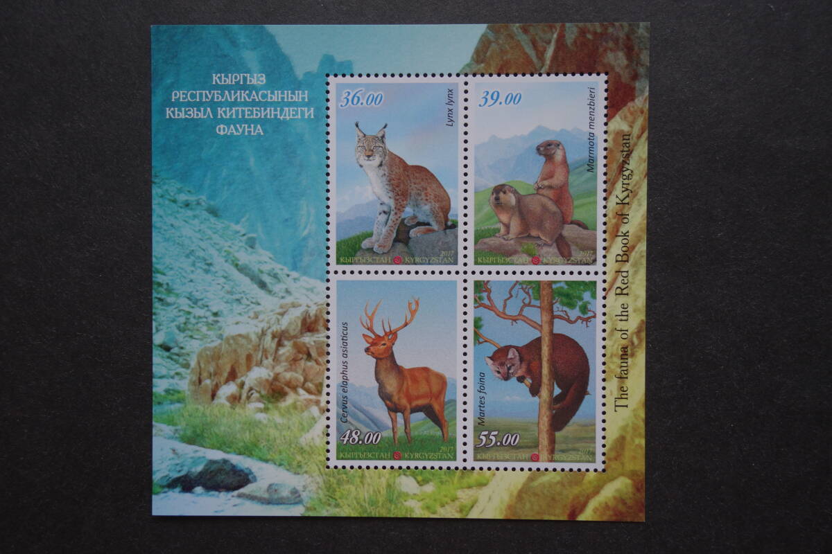 - 外国切手:キルギス切手 「キルギスの絶滅のおそれのある動物」(オオヤマネコ ほか)4種m/s 未使用