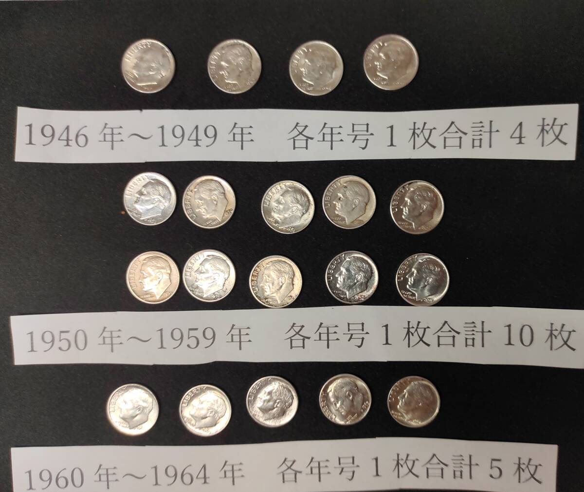 > アメリカ合衆国 10セント銀貨/ /ルーズベルト大統領の肖像を描いた、ダイム銀貨/コンプリート19枚/(A2硬貨19フランクリン)