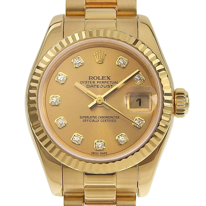 - ロレックス ROLEX デイトジャスト レディース 自動巻き K18YG 10Pダイヤモンド シャンパン文字盤 Y番 2003年 179178G 中古 新入荷 RO0276