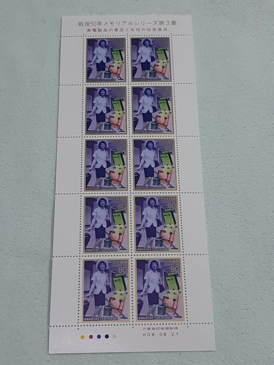 戦後50年メモリアルシリーズ 第3集 家電製品の普及と女性の社会進出 H8 切手シート1枚 O-1