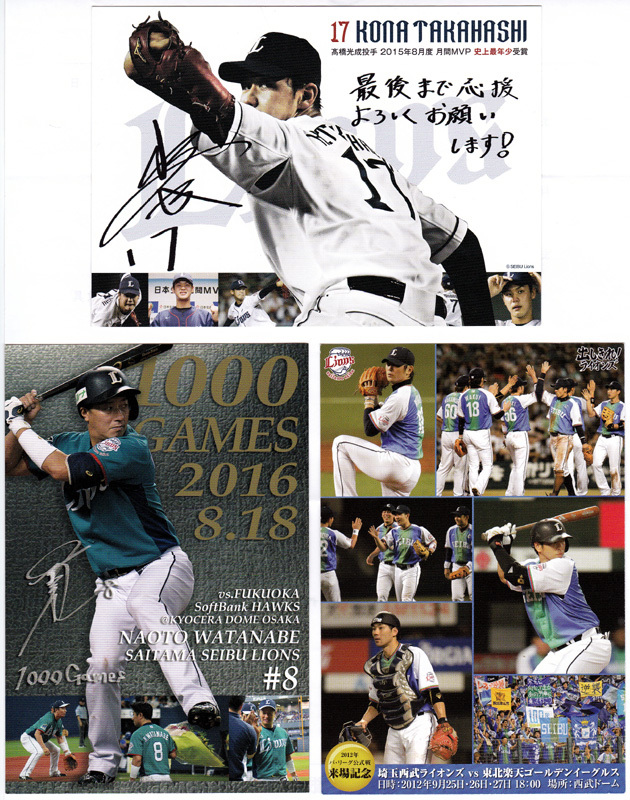 - 【3種セット】埼玉西武ライオンズ 球団発行 球場配布 記念ポストカード 髙橋光成、渡辺直人、西武鉄道創立100周年記念シリーズ