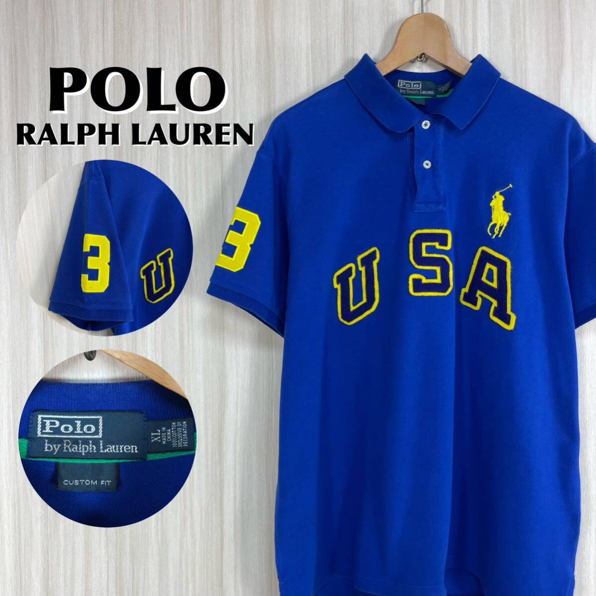 - ☆90s☆POLO ポロバイラルフローレン ビッグロゴ USA ビッグポニー ナンバリング 半袖ポロシャツ XL表記 ロイヤルブルー アメカジ 古着