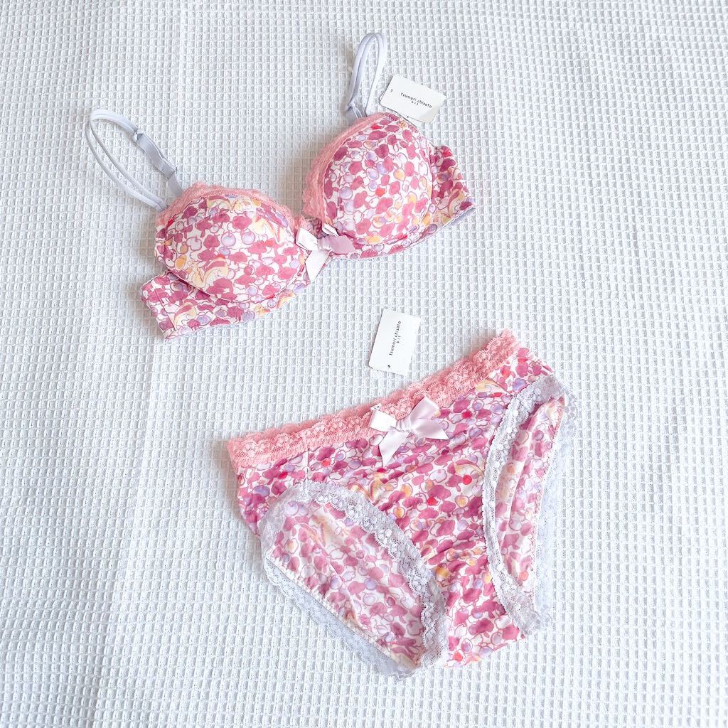 - ★新品★TSUMORI CHISATO BITブラジャー&ショーツ上下セット下着パンティMサイズC70ワコールWacoalツモリチサトSLEEPりんご白ピンク紫