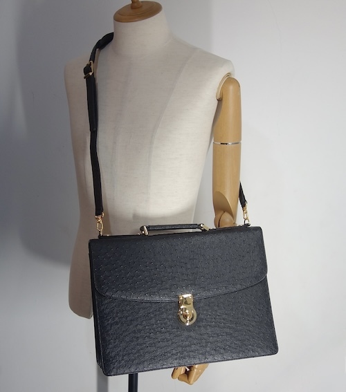 - TK 新品 オーストリッチ 2way ブリーフケース 黒 ブラック 本革 レザー ビジネスバッグ