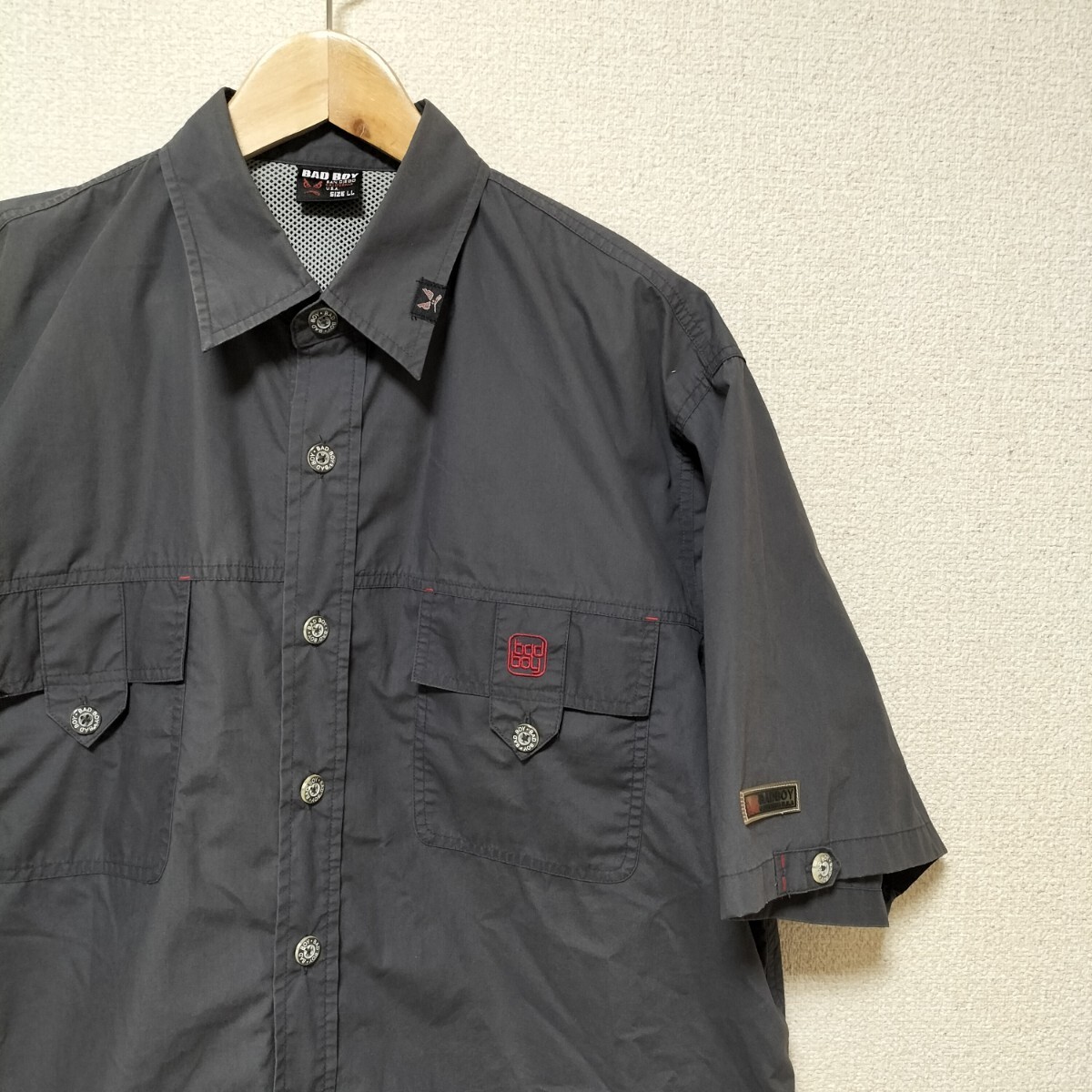 - 美品★90-00's BADBOY バッドボーイ 半袖ギミックシャツ ワークシャツ スケーターシャツ 両胸ポケット サイズXL ポリコットン US古着 USED