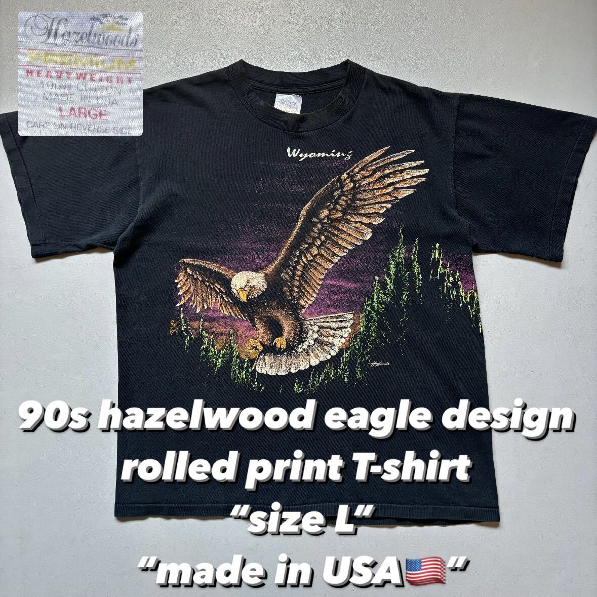 > 90s hazelwood eagle rolled print T-shirt sizeL “made in USA” 90年代 イーグル 巻きプリ Tシャツ アメリカ製 USA製 ビンテージTシャツ