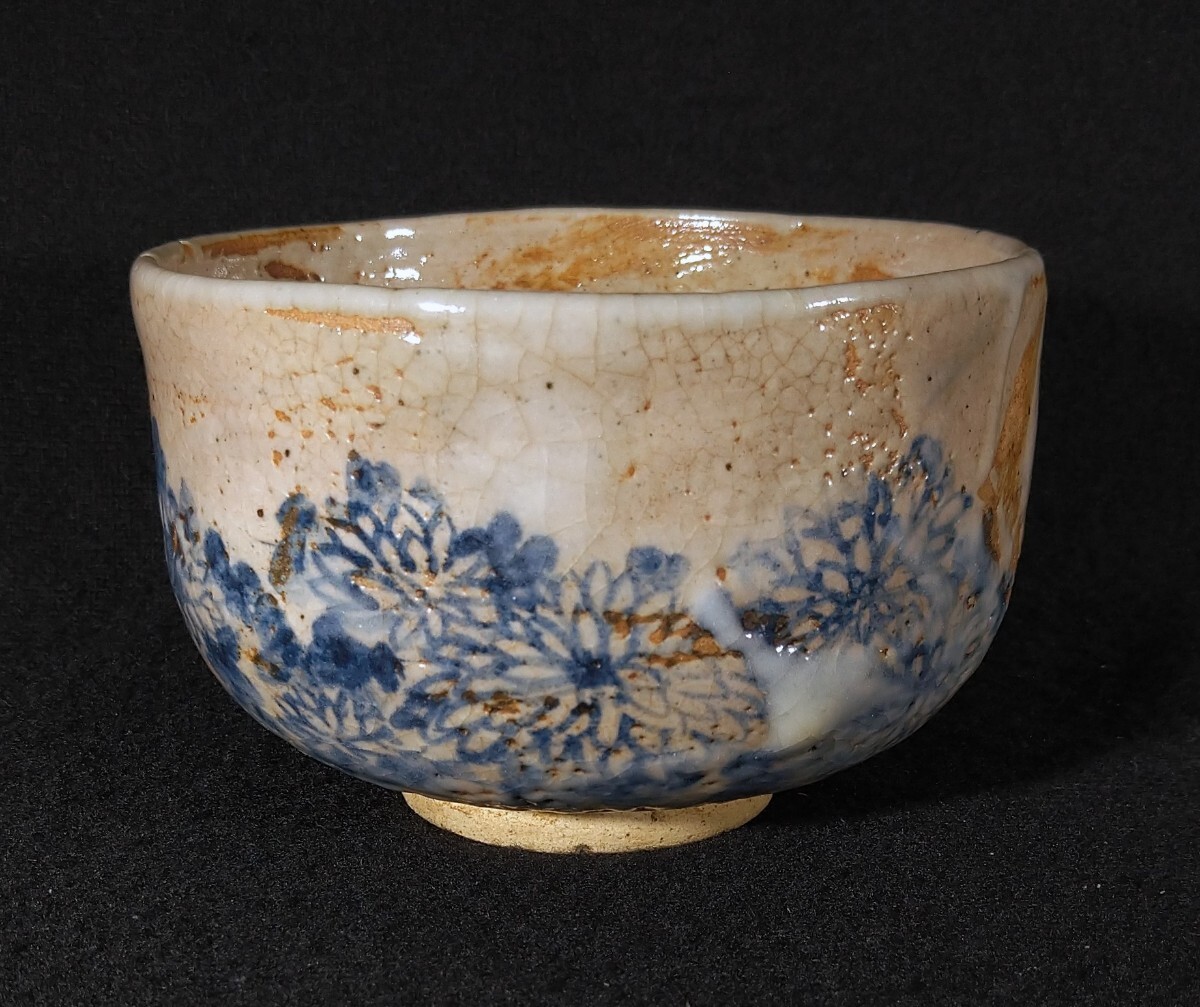 - 染付 草花文 12cm 茶碗 銘有 茶道具 抹茶碗 bpn-27b3698