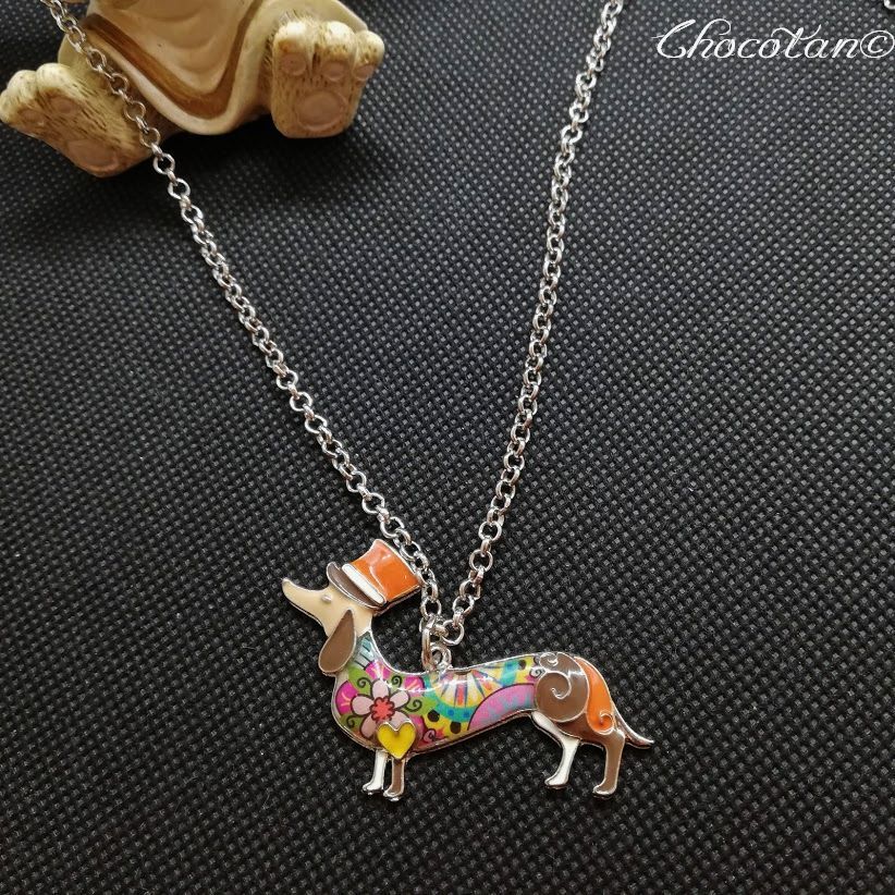 - 【送料無料】ダックスフンド B 帽子 エナメルネックレス 茶【新品】