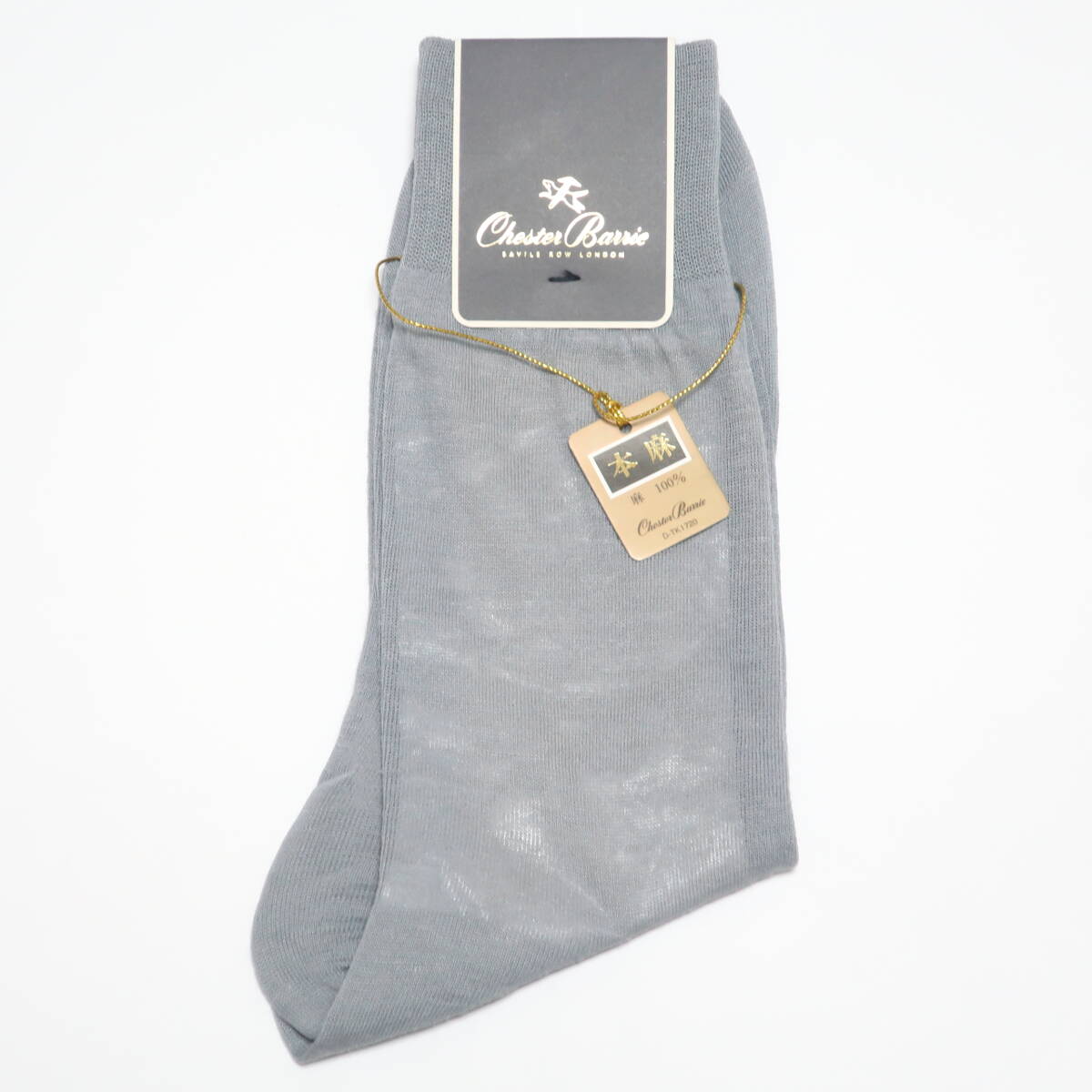 - チェスターバリー 麻100% 靴下 グレー 日本製 本麻 ソックス 紳士 メンズ 薄手 夏物 イギリス サヴィルロウ シースルー chester barrie