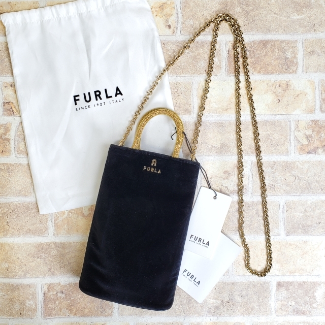 - 未使用 フルラ FURLA ベロア 2WAY パーティーバッグ バッグ ミニ ブラック