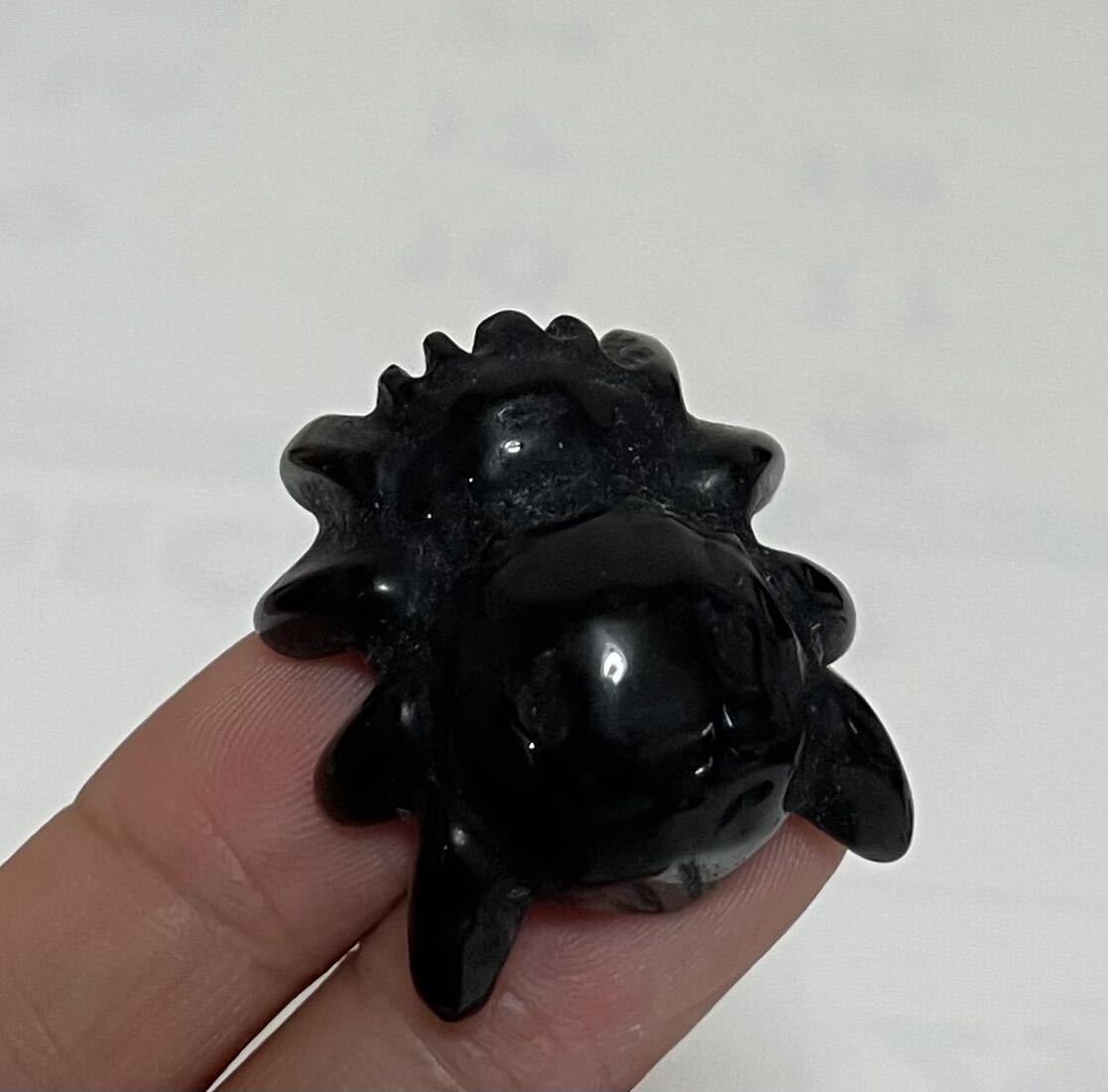 - オブシディアンの蜘蛛 黒曜石 ブラック 置物インテリア 風水晶 魔除 お守 幸運 ラッキー 天然石の彫刻