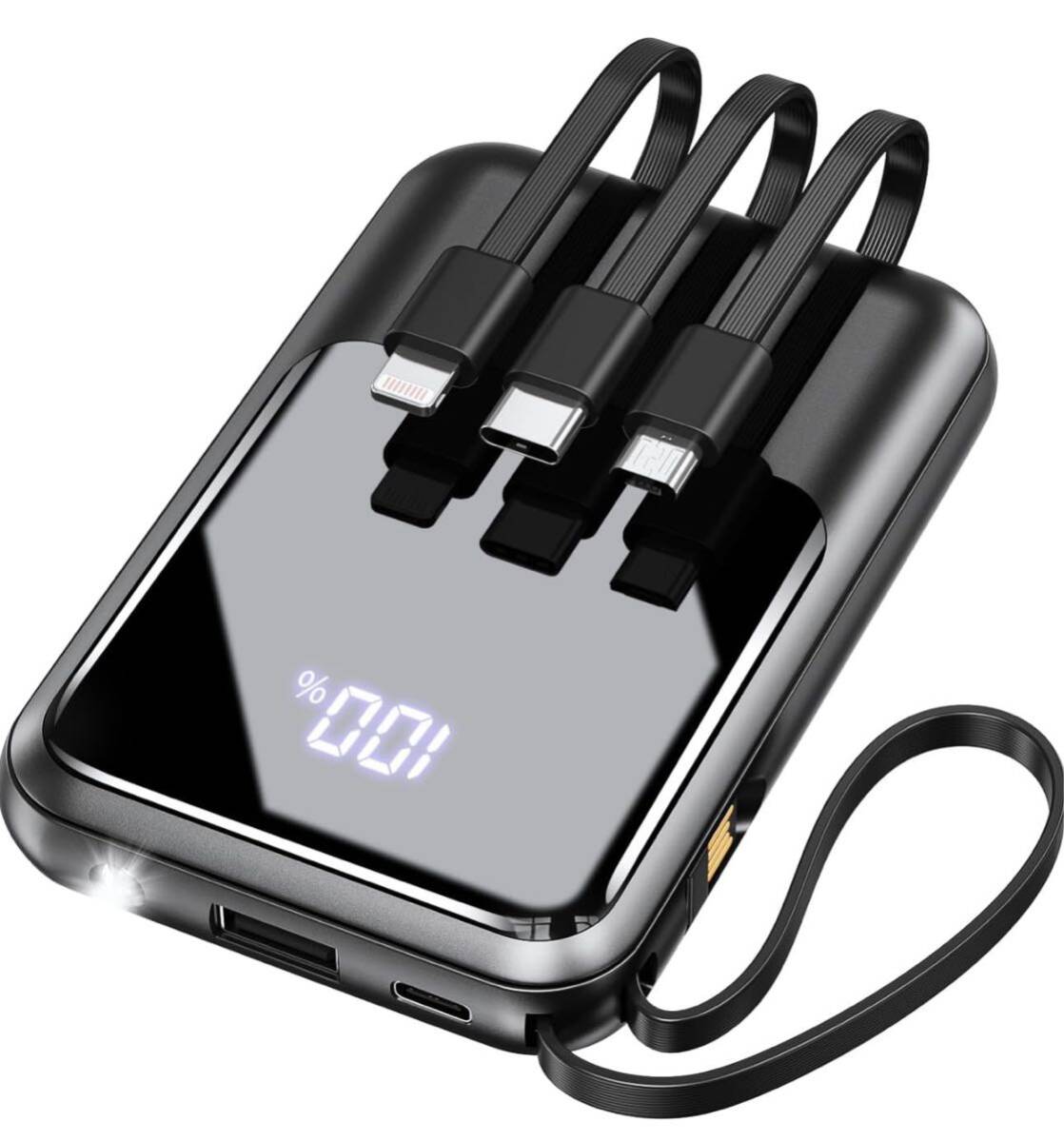 - モバイルバッテリー 大容量 急速充電22000mAh大容量 4つのケーブル内蔵 4台同時に充電 LED残量表示 PSE認証済&安全回路保護