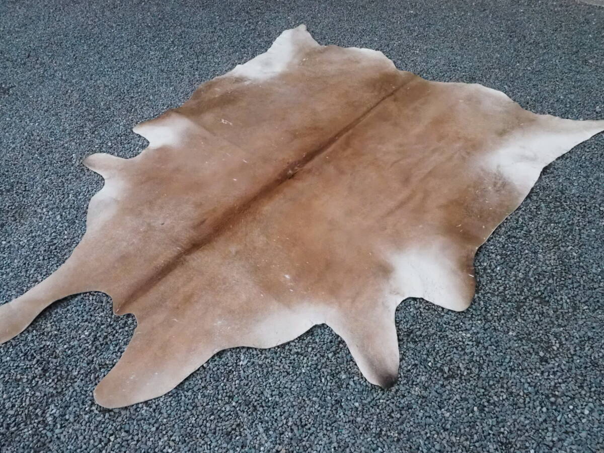 - 【アメリカンアンティークCowラグ】カウカーペット本革レザー絨毯マット古道具インテリア敷物テーブル骨董インダストリアル玄関リビング