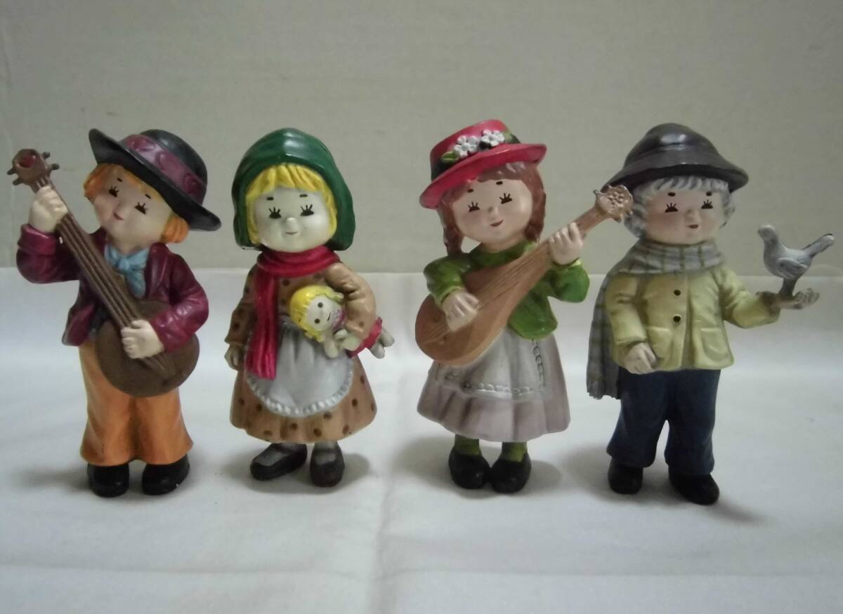 - 小さめ 人形 楽器を持つ 鳩を持つ お人形を持つ 計4体 洋人形 ジオラマ わらべ人形 童土人形 工芸品 置物 飾り物 レトロ B