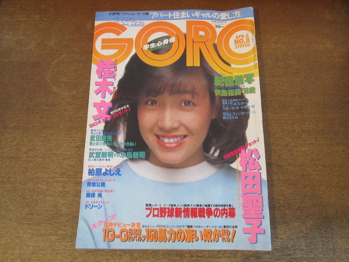 - 2408mn●GORO ゴロー 8/1982昭和57.4.8●表紙:柏原よしえ(柏原芳恵)/松田聖子カラー7p/美保純5p/新井薫子/稲垣潤一/秋吉久美子/武田鉄矢