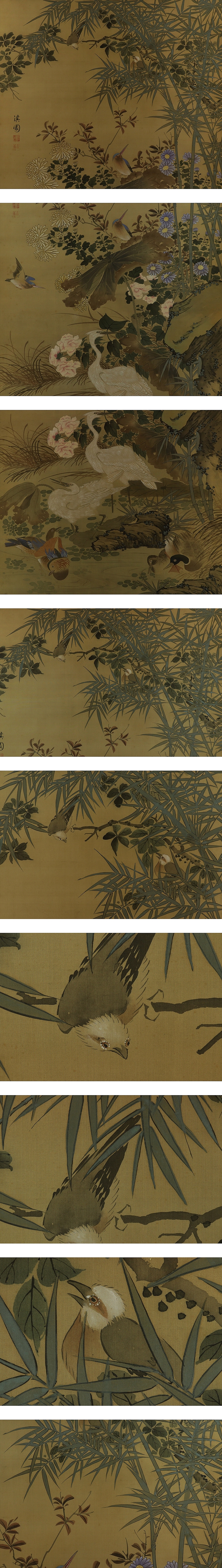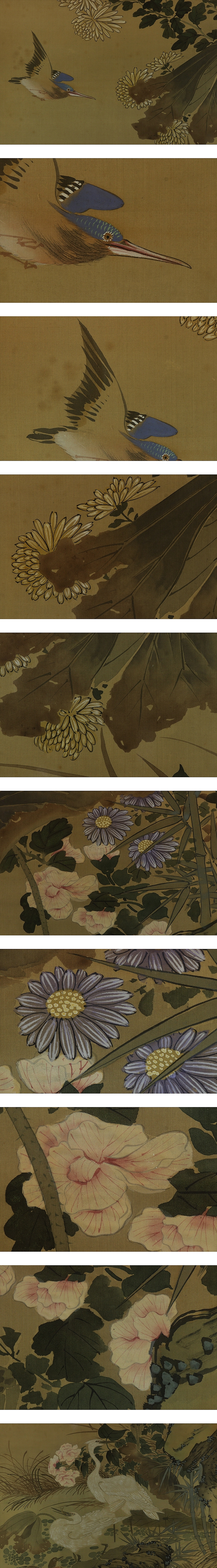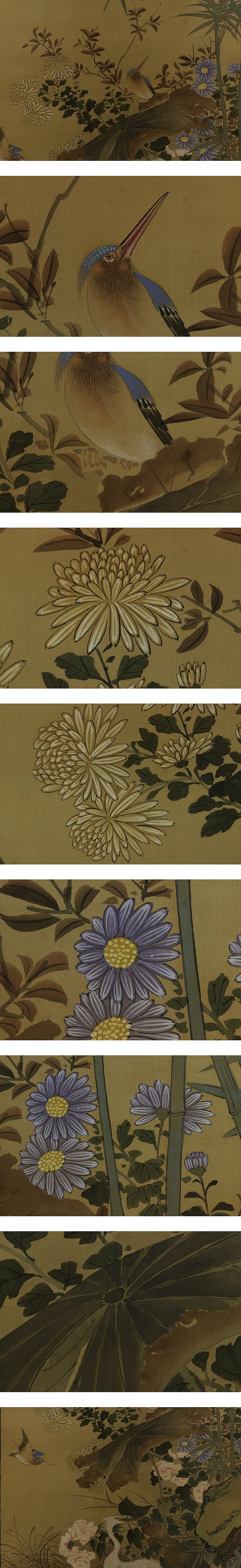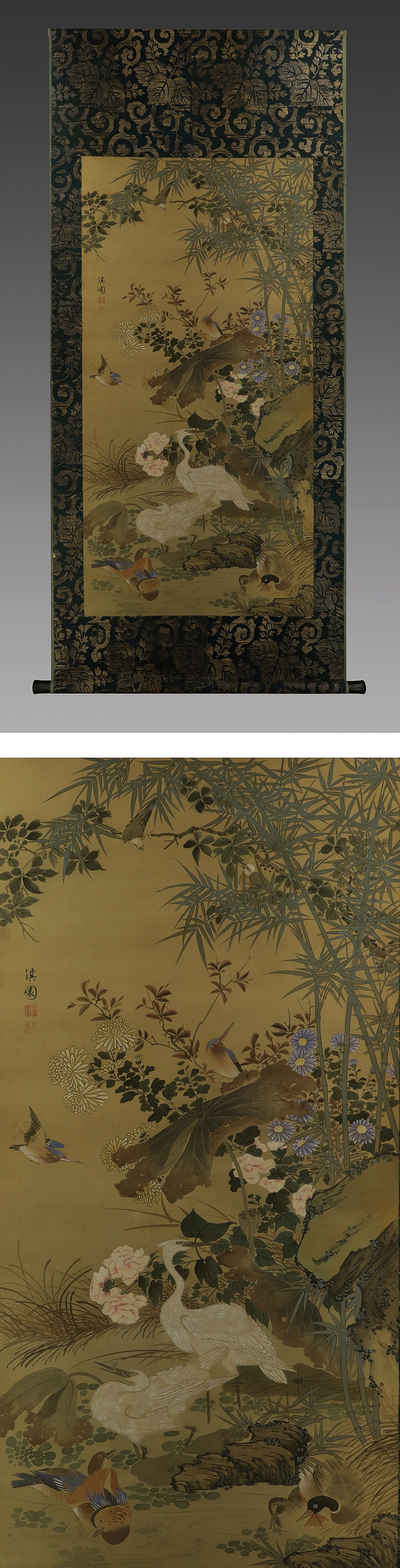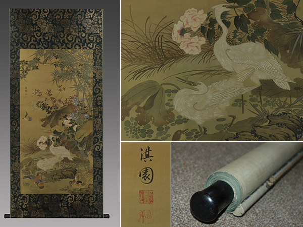 - 【模写】柳沢淇園【大幅・花鳥図】◆絹本◆合箱◆掛軸 s01031