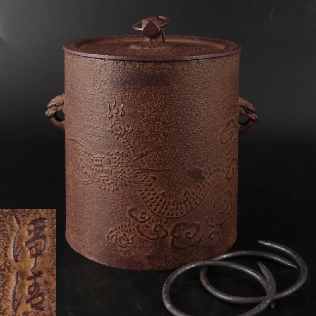 - ◆◇佐藤浄清 雲龍釜 筒釜 風炉釜 吊釜 茶釜 釜鐶付き 共箱 茶道具◇◆